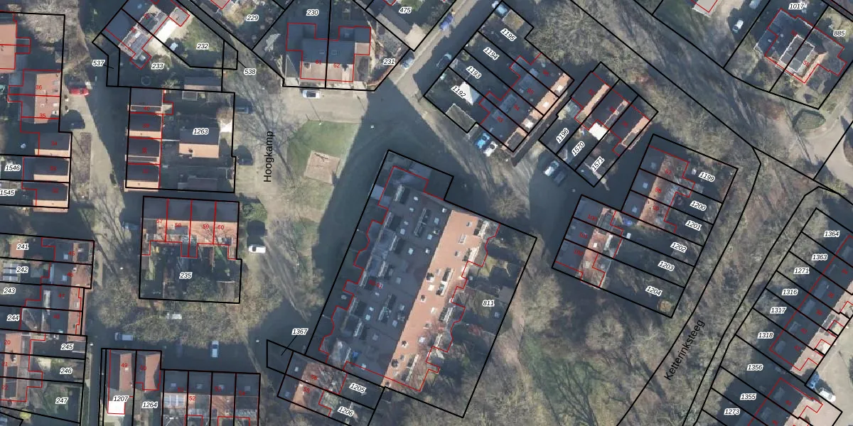 Het perceel waarop Hoogkamp 68 staat heeft een oppervlakte van 1925 m². Dit is een zeer groot perceel. De perceeloppervlakte wordt geregistreerd door het Kadaster. Gedetailleerde informatie over de maten van dit perceel kunt u vinden in het rapport Kadastrale kaart met maatvoering van Hoogkamp 68.