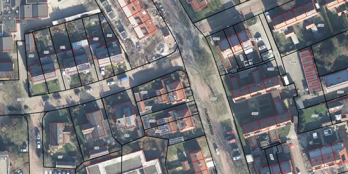 Gebruik de zoekbalk of klik op een perceel voor informatie over de adressen binnen dit perceel.