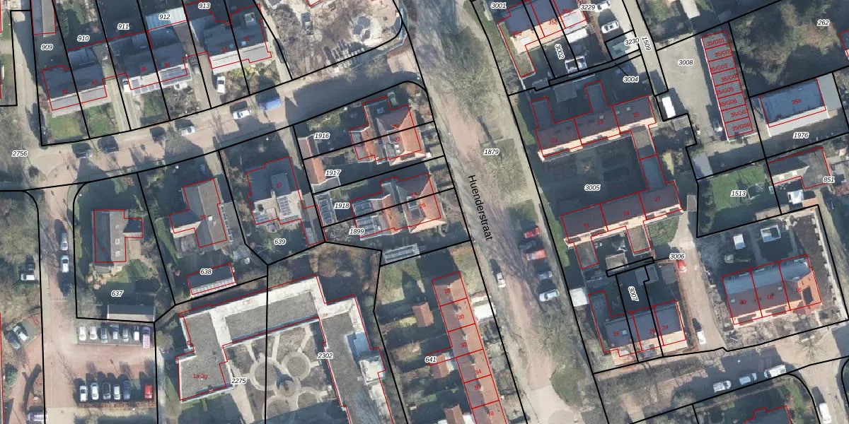 Gebruik de zoekbalk of klik op een perceel voor informatie over de adressen binnen dit perceel.