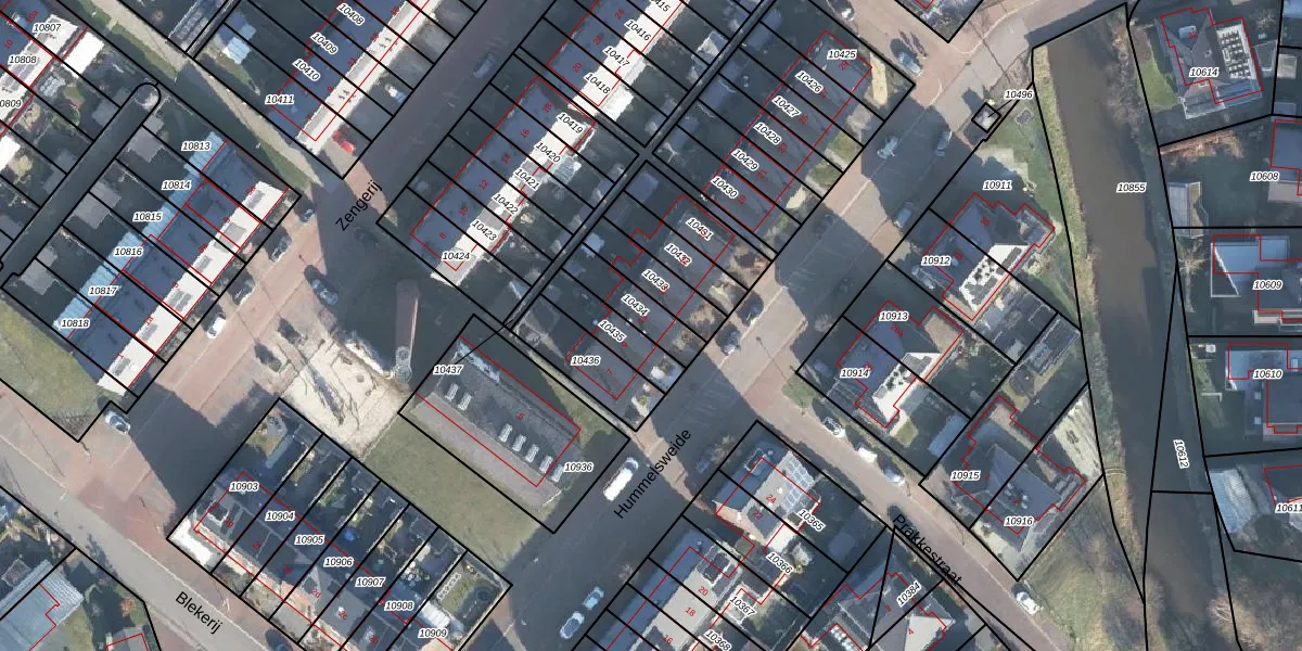 Gebruik de zoekbalk of klik op een perceel voor informatie over de adressen binnen dit perceel.