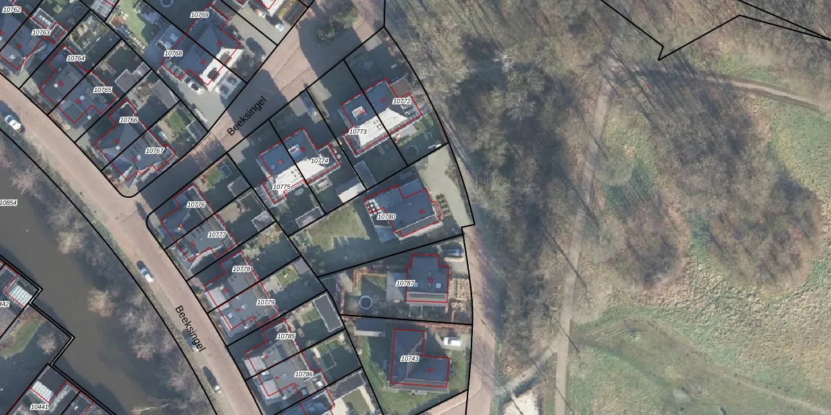Gebruik de zoekbalk of klik op een perceel voor informatie over de adressen binnen dit perceel.
