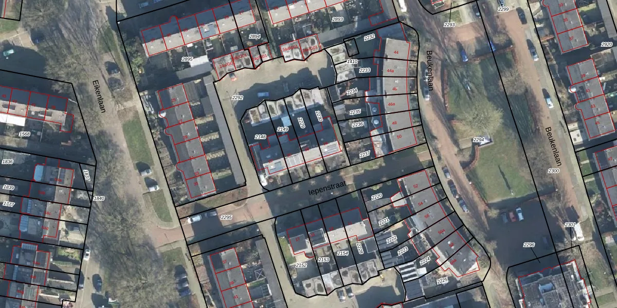 Het perceel waarop Iepenstraat 18 staat heeft een oppervlakte van 164 m². Dit is een middelgroot perceel. De perceeloppervlakte wordt geregistreerd door het Kadaster. Gedetailleerde informatie over de maten van dit perceel kunt u vinden in het rapport Kadastrale kaart met maatvoering van Iepenstraat 18.