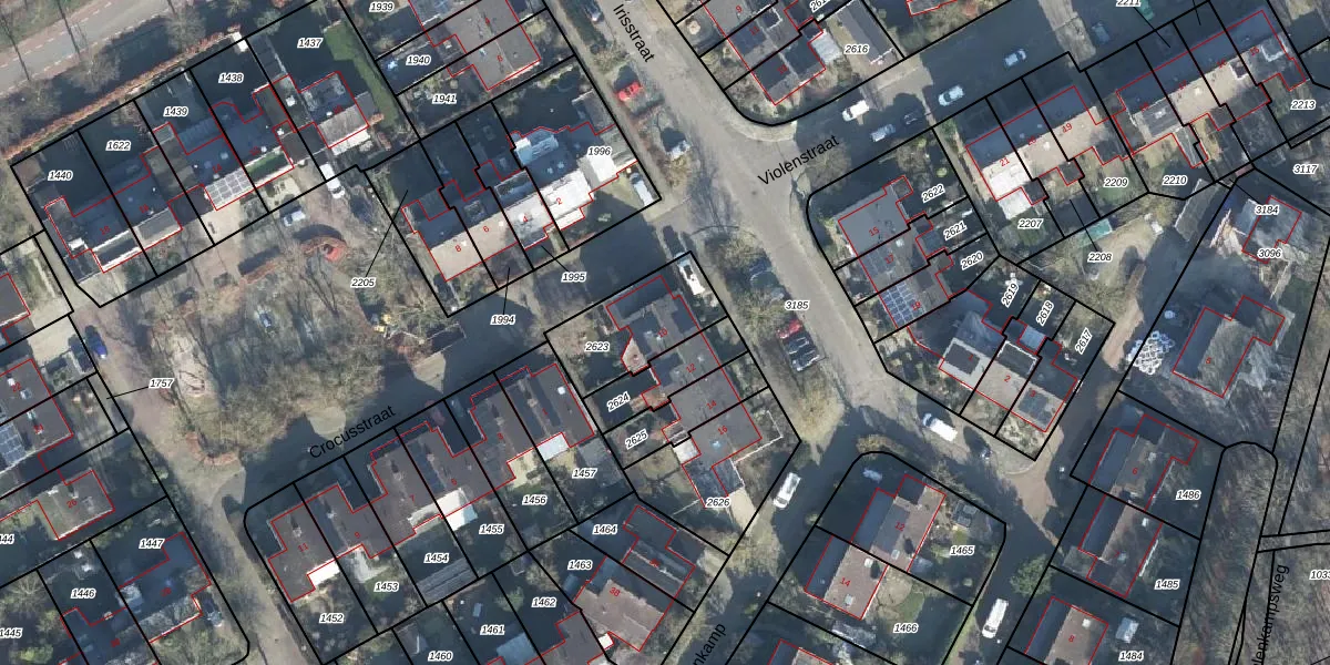 Gebruik de zoekbalk of klik op een perceel voor informatie over de adressen binnen dit perceel.