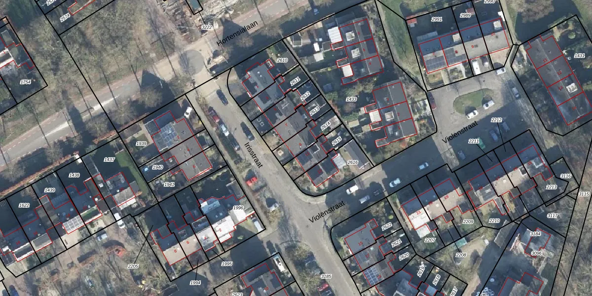 Gebruik de zoekbalk of klik op een perceel voor informatie over de adressen binnen dit perceel.