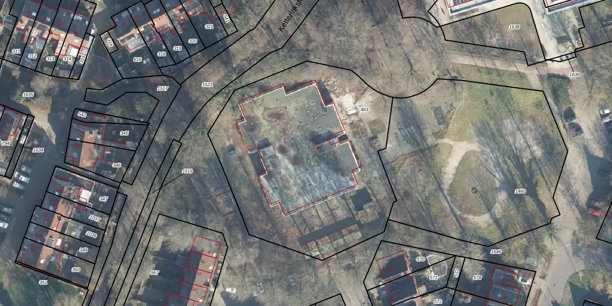 Het perceel waarop Ketterinksteeg 2-b staat heeft een oppervlakte van 2940 m². Dit is een zeer groot perceel. De perceeloppervlakte wordt geregistreerd door het Kadaster. Gedetailleerde informatie over de maten van dit perceel kunt u vinden in het rapport Kadastrale kaart met maatvoering van Ketterinksteeg 2-b.