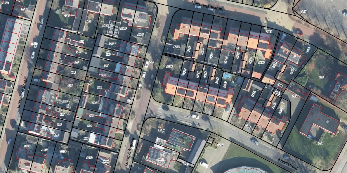Het perceel waarop Kievitstraat 20 staat heeft een oppervlakte van 351 m². Dit is een groot perceel. De perceeloppervlakte wordt geregistreerd door het Kadaster. Gedetailleerde informatie over de maten van dit perceel kunt u vinden in het rapport Kadastrale kaart met maatvoering van Kievitstraat 20.