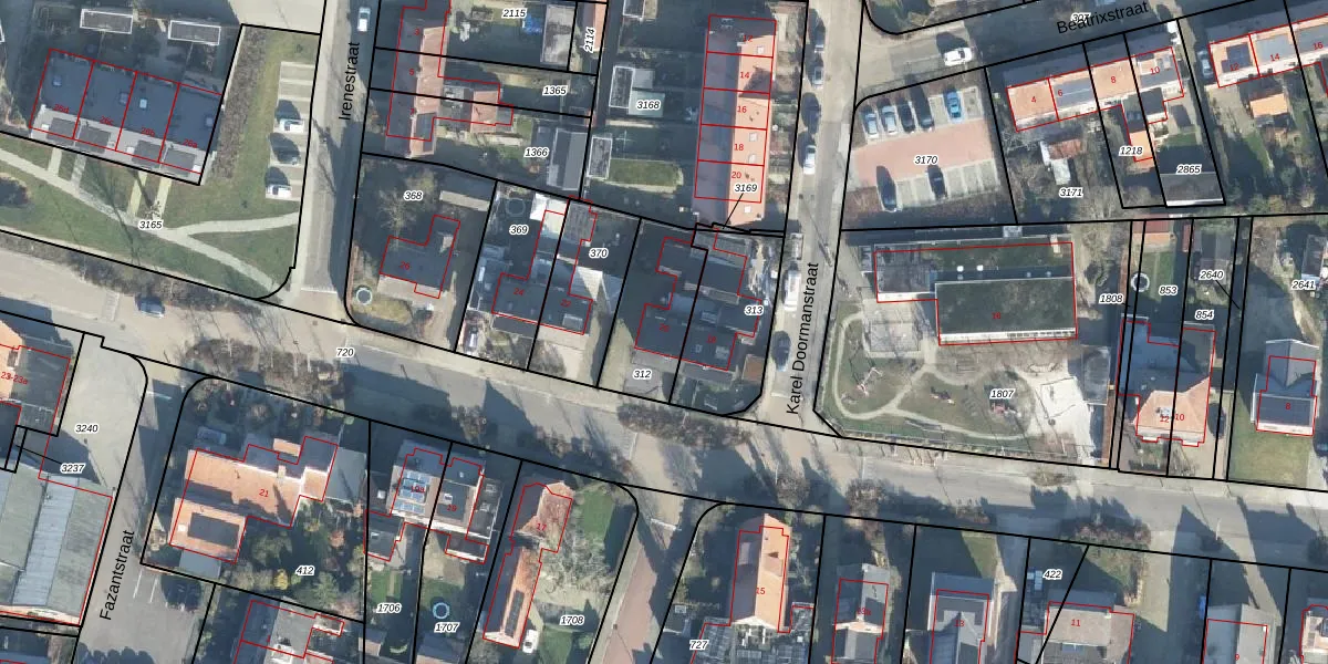 Gebruik de zoekbalk of klik op een perceel voor informatie over de adressen binnen dit perceel.