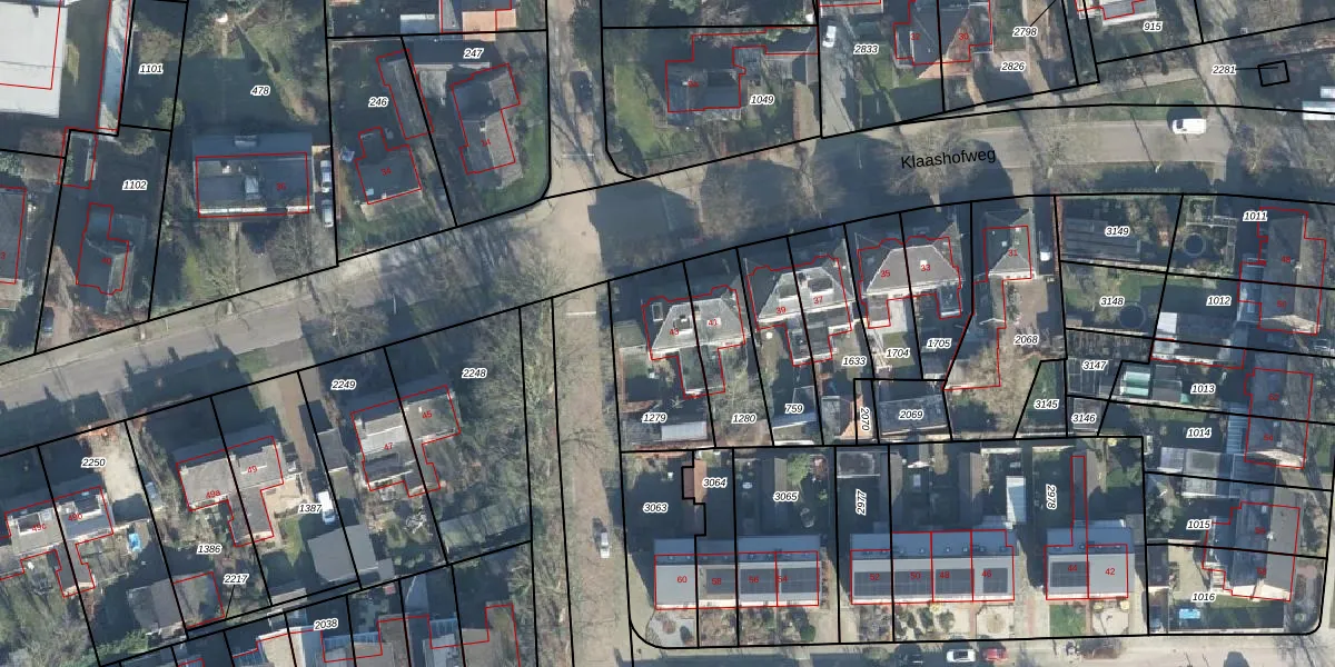 Het perceel waarop Klaashofweg 43 staat heeft een oppervlakte van 340 m². Dit is een groot perceel. De perceeloppervlakte wordt geregistreerd door het Kadaster. Gedetailleerde informatie over de maten van dit perceel kunt u vinden in het rapport Kadastrale kaart met maatvoering van Klaashofweg 43.