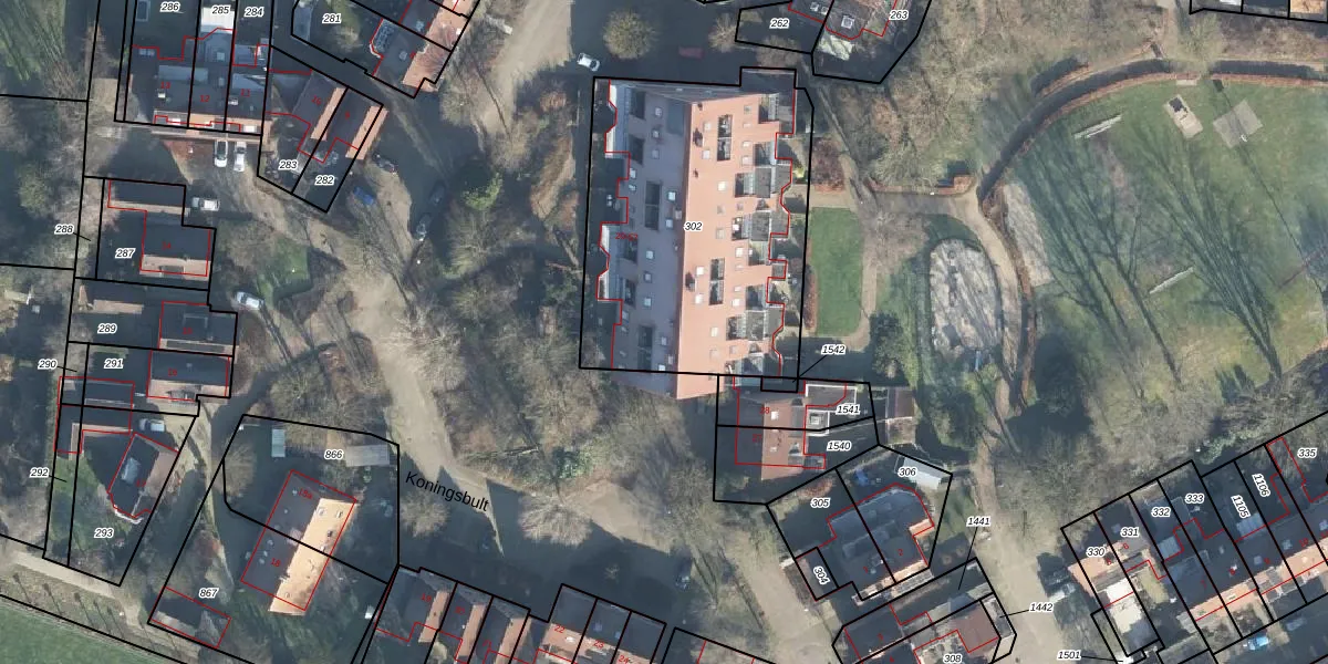 Het perceel waarop Koningsbult 46 staat heeft een oppervlakte van 1470 m². Dit is een zeer groot perceel. De perceeloppervlakte wordt geregistreerd door het Kadaster. Gedetailleerde informatie over de maten van dit perceel kunt u vinden in het rapport Kadastrale kaart met maatvoering van Koningsbult 46.