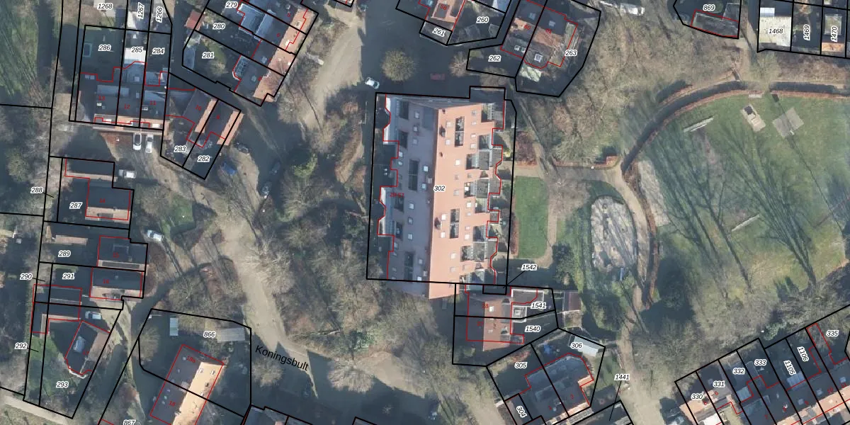 Het perceel waarop Koningsbult 49 staat heeft een oppervlakte van 1470 m². Dit is een zeer groot perceel. De perceeloppervlakte wordt geregistreerd door het Kadaster. Gedetailleerde informatie over de maten van dit perceel kunt u vinden in het rapport Kadastrale kaart met maatvoering van Koningsbult 49.