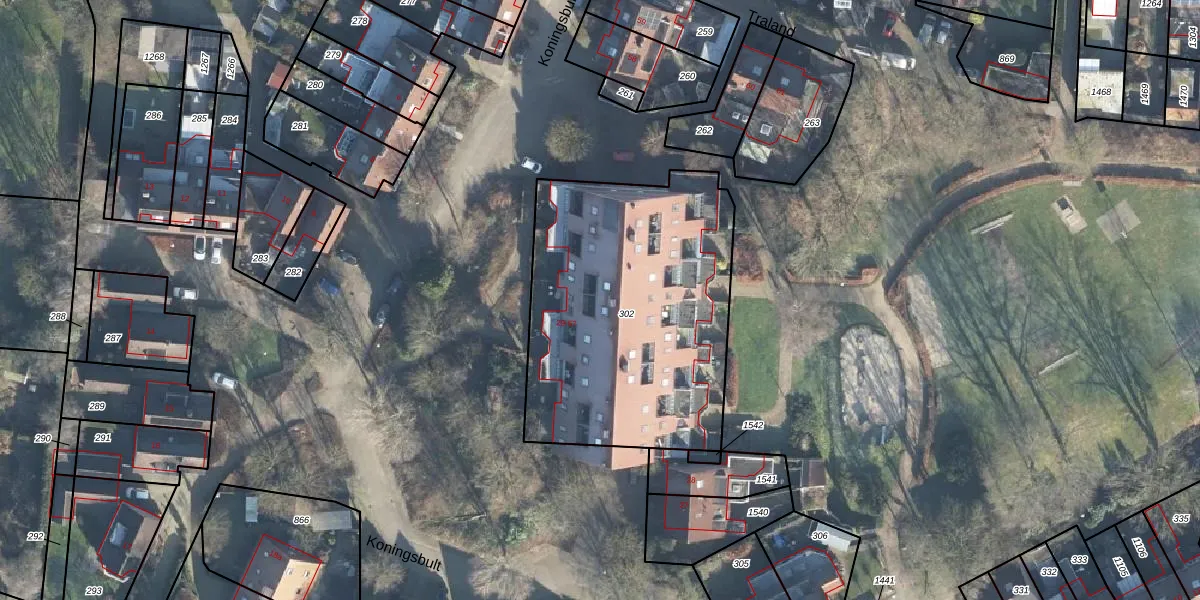 Het perceel waarop Koningsbult 55 staat heeft een oppervlakte van 1470 m². Dit is een zeer groot perceel. De perceeloppervlakte wordt geregistreerd door het Kadaster. Gedetailleerde informatie over de maten van dit perceel kunt u vinden in het rapport Kadastrale kaart met maatvoering van Koningsbult 55.