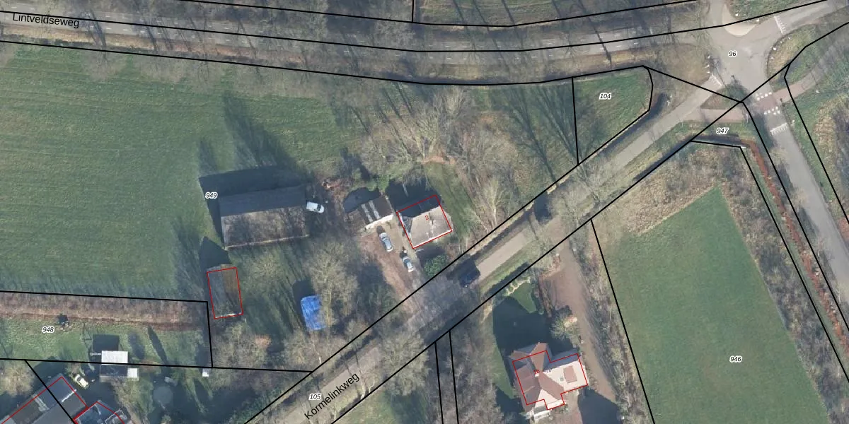 Kormelinkweg 2 is gelegen op kadastraal perceel EBG02AB949. Deze kadastrale aanduiding is uniek en wordt gebruikt door het Kadaster om eigendomsrechten en andere zakelijke rechten vast te leggen. Het perceel maakt onderdeel uit van de kadastrale gemeente Eibergen.