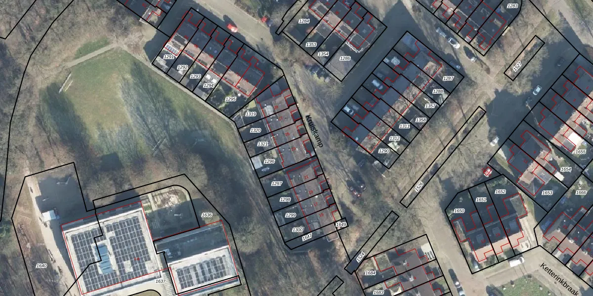 Het perceel waarop Kruiskamp 23 staat heeft een oppervlakte van 166 m². Dit is een middelgroot perceel. De perceeloppervlakte wordt geregistreerd door het Kadaster. Gedetailleerde informatie over de maten van dit perceel kunt u vinden in het rapport Kadastrale kaart met maatvoering van Kruiskamp 23.