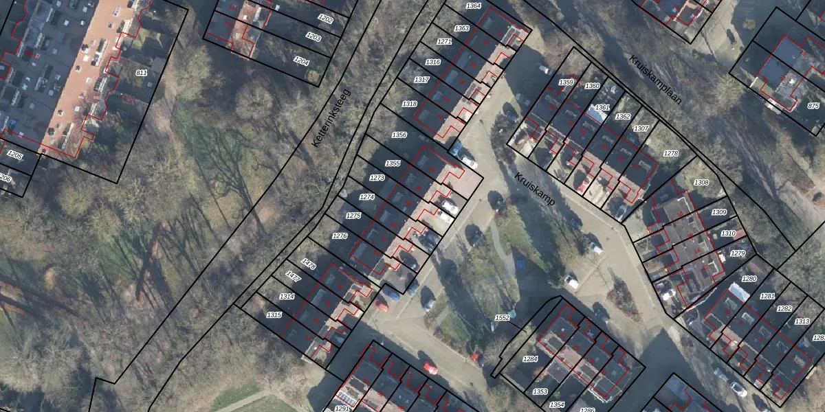 Het perceel waarop Kruiskamp 48 staat heeft een oppervlakte van 154 m². Dit is een middelgroot perceel. De perceeloppervlakte wordt geregistreerd door het Kadaster. Gedetailleerde informatie over de maten van dit perceel kunt u vinden in het rapport Kadastrale kaart met maatvoering van Kruiskamp 48.