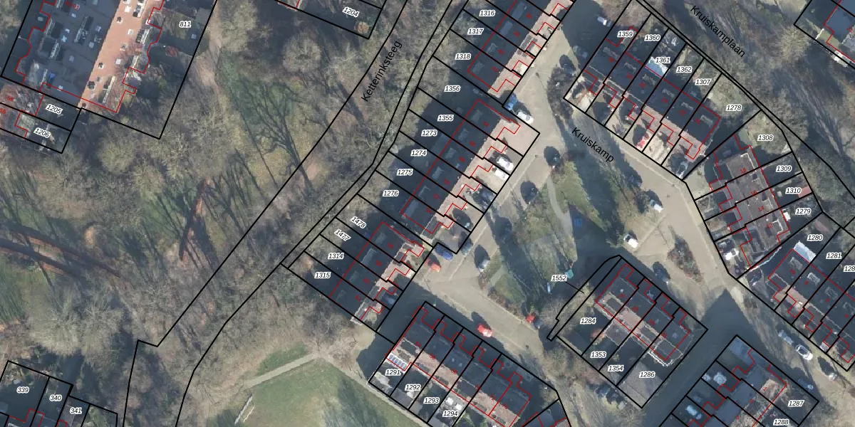 Het perceel waarop Kruiskamp 54 staat heeft een oppervlakte van 190 m². Dit is een middelgroot perceel. De perceeloppervlakte wordt geregistreerd door het Kadaster. Gedetailleerde informatie over de maten van dit perceel kunt u vinden in het rapport Kadastrale kaart met maatvoering van Kruiskamp 54.
