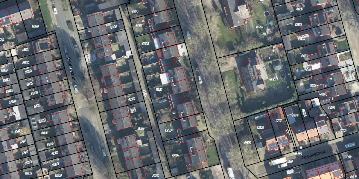 Het perceel waarop Lariksweg 16 staat heeft een oppervlakte van 1060 m². Dit is een zeer groot perceel. De perceeloppervlakte wordt geregistreerd door het Kadaster. Gedetailleerde informatie over de maten van dit perceel kunt u vinden in het rapport Kadastrale kaart met maatvoering van Lariksweg 16.
