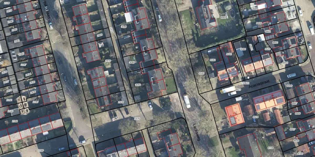 Het perceel waarop Lariksweg 22 staat heeft een oppervlakte van 558 m². Dit is een groot perceel. De perceeloppervlakte wordt geregistreerd door het Kadaster. Gedetailleerde informatie over de maten van dit perceel kunt u vinden in het rapport Kadastrale kaart met maatvoering van Lariksweg 22.