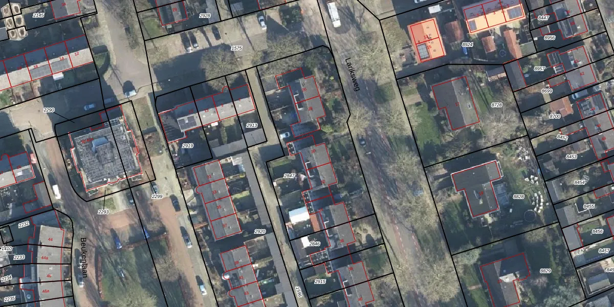 Lariksweg 30 is gelegen op kadastraal perceel EBG02G2847. Deze kadastrale aanduiding is uniek en wordt gebruikt door het Kadaster om eigendomsrechten en andere zakelijke rechten vast te leggen. Het perceel maakt onderdeel uit van de kadastrale gemeente Eibergen.