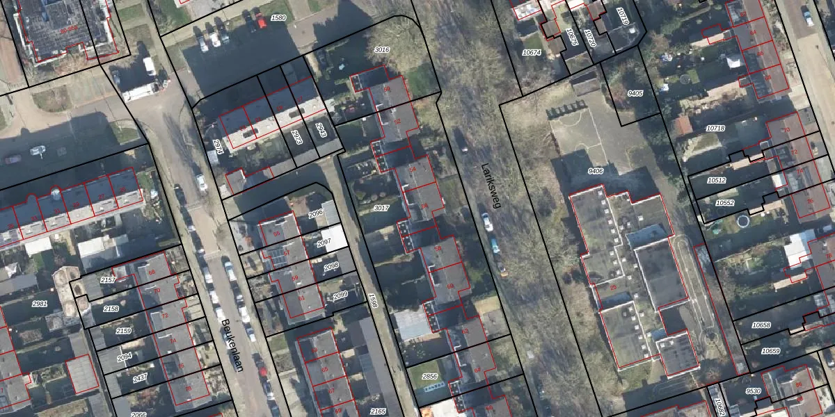 Het perceel waarop Lariksweg 56 staat heeft een oppervlakte van 1581 m². Dit is een zeer groot perceel. De perceeloppervlakte wordt geregistreerd door het Kadaster. Gedetailleerde informatie over de maten van dit perceel kunt u vinden in het rapport Kadastrale kaart met maatvoering van Lariksweg 56.
