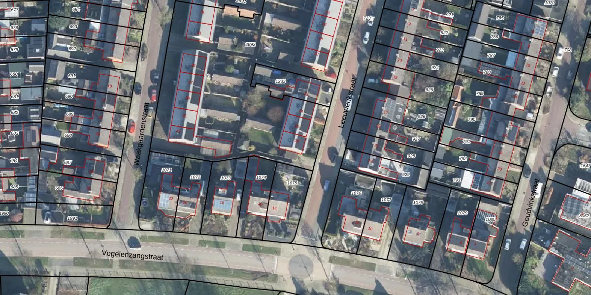 Het perceel waarop Leeuwerikstraat 28 staat heeft een oppervlakte van 3720 m². Dit is een zeer groot perceel. De perceeloppervlakte wordt geregistreerd door het Kadaster. Gedetailleerde informatie over de maten van dit perceel kunt u vinden in het rapport Kadastrale kaart met maatvoering van Leeuwerikstraat 28.