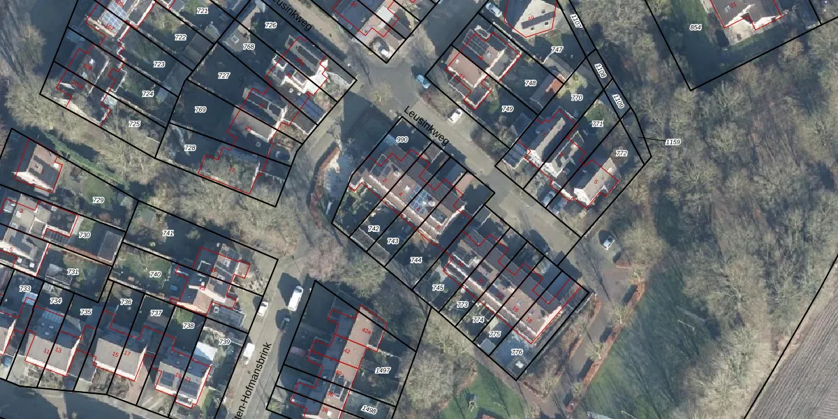 Het perceel waarop Leusinkweg 6 staat heeft een oppervlakte van 163 m². Dit is een middelgroot perceel. De perceeloppervlakte wordt geregistreerd door het Kadaster. Gedetailleerde informatie over de maten van dit perceel kunt u vinden in het rapport Kadastrale kaart met maatvoering van Leusinkweg 6.