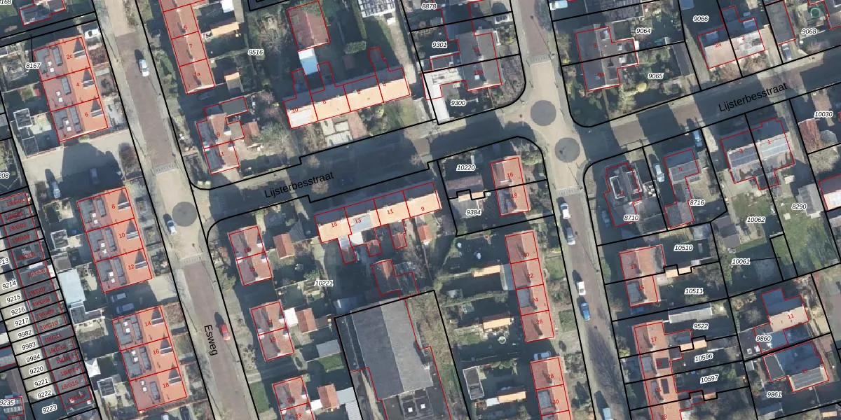 Lijsterbesstraat 9 is gelegen op kadastraal perceel EBG02D10221. Deze kadastrale aanduiding is uniek en wordt gebruikt door het Kadaster om eigendomsrechten en andere zakelijke rechten vast te leggen. Het perceel maakt onderdeel uit van de kadastrale gemeente Eibergen.