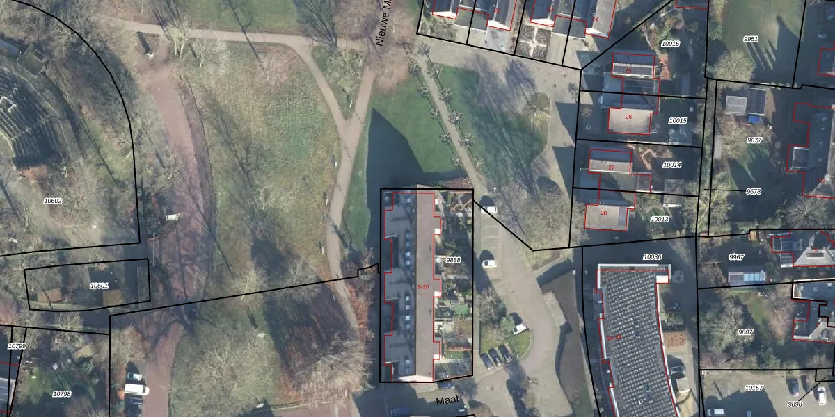 Het perceel waarop Maat 10 staat heeft een oppervlakte van 1020 m². Dit is een zeer groot perceel. De perceeloppervlakte wordt geregistreerd door het Kadaster. Gedetailleerde informatie over de maten van dit perceel kunt u vinden in het rapport Kadastrale kaart met maatvoering van Maat 10.