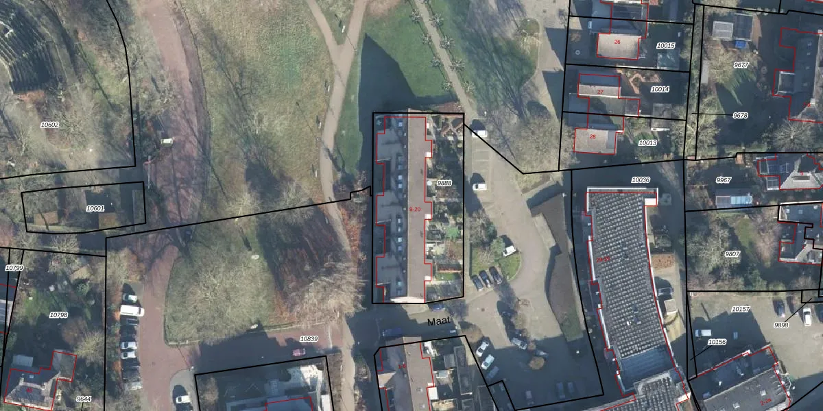 Het perceel waarop Maat 13 staat heeft een oppervlakte van 1020 m². Dit is een zeer groot perceel. De perceeloppervlakte wordt geregistreerd door het Kadaster. Gedetailleerde informatie over de maten van dit perceel kunt u vinden in het rapport Kadastrale kaart met maatvoering van Maat 13.