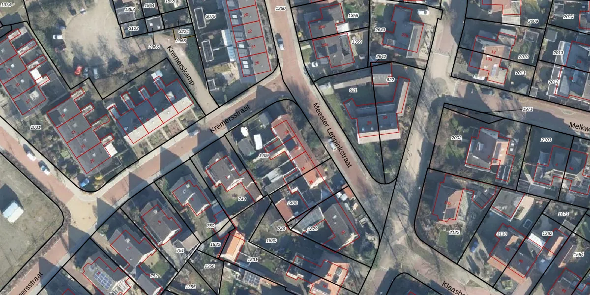 Het perceel waarop Meester Leppinkstraat 32 staat heeft een oppervlakte van 667 m². Dit is een groot perceel. De perceeloppervlakte wordt geregistreerd door het Kadaster. Gedetailleerde informatie over de maten van dit perceel kunt u vinden in het rapport Kadastrale kaart met maatvoering van Meester Leppinkstraat 32.