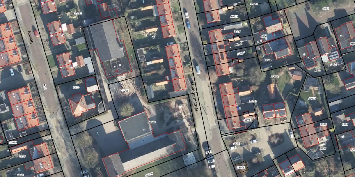 Het perceel waarop Meidoornstraat 34 staat heeft een oppervlakte van 4075 m². Dit is een zeer groot perceel. De perceeloppervlakte wordt geregistreerd door het Kadaster. Gedetailleerde informatie over de maten van dit perceel kunt u vinden in het rapport Kadastrale kaart met maatvoering van Meidoornstraat 34.