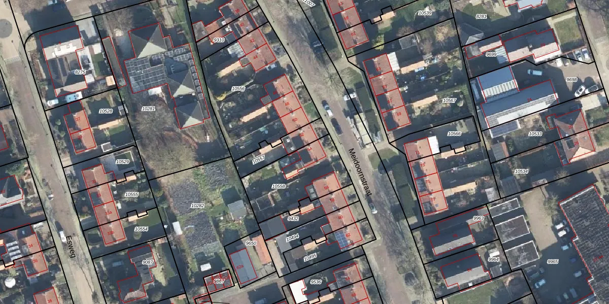 Meidoornstraat 54 is gelegen op kadastraal perceel EBG02D10558. Deze kadastrale aanduiding is uniek en wordt gebruikt door het Kadaster om eigendomsrechten en andere zakelijke rechten vast te leggen. Het perceel maakt onderdeel uit van de kadastrale gemeente Eibergen.