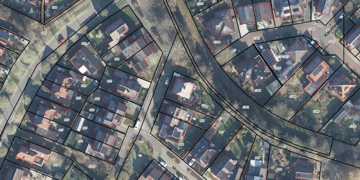 Het perceel waarop Muggenborg 1 staat heeft een oppervlakte van 414 m². Dit is een groot perceel. De perceeloppervlakte wordt geregistreerd door het Kadaster. Gedetailleerde informatie over de maten van dit perceel kunt u vinden in het rapport Kadastrale kaart met maatvoering van Muggenborg 1.