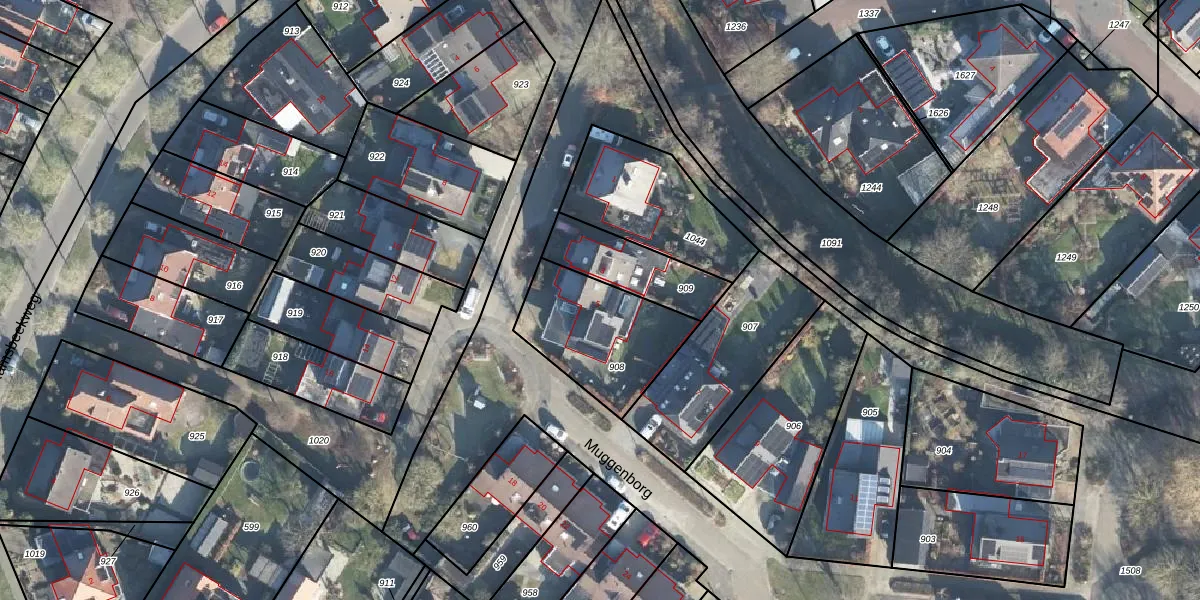 Het perceel waarop Muggenborg 5 staat heeft een oppervlakte van 436 m². Dit is een groot perceel. De perceeloppervlakte wordt geregistreerd door het Kadaster. Gedetailleerde informatie over de maten van dit perceel kunt u vinden in het rapport Kadastrale kaart met maatvoering van Muggenborg 5.