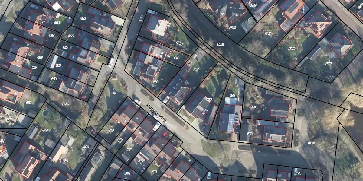 Het perceel waarop Muggenborg 7 staat heeft een oppervlakte van 511 m². Dit is een groot perceel. De perceeloppervlakte wordt geregistreerd door het Kadaster. Gedetailleerde informatie over de maten van dit perceel kunt u vinden in het rapport Kadastrale kaart met maatvoering van Muggenborg 7.