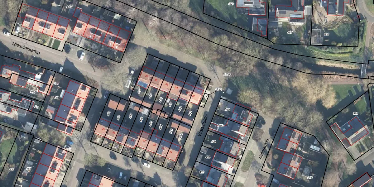 Het perceel waarop Niessinkkamp 33 staat heeft een oppervlakte van 154 m². Dit is een middelgroot perceel. De perceeloppervlakte wordt geregistreerd door het Kadaster. Gedetailleerde informatie over de maten van dit perceel kunt u vinden in het rapport Kadastrale kaart met maatvoering van Niessinkkamp 33.