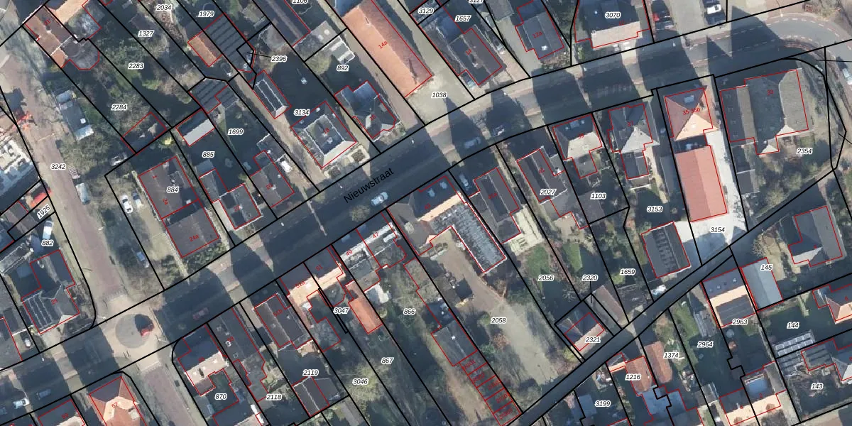 Het perceel waarop Nieuwstraat 43 staat heeft een oppervlakte van 995 m². Dit is een groot perceel. De perceeloppervlakte wordt geregistreerd door het Kadaster. Gedetailleerde informatie over de maten van dit perceel kunt u vinden in het rapport Kadastrale kaart met maatvoering van Nieuwstraat 43.