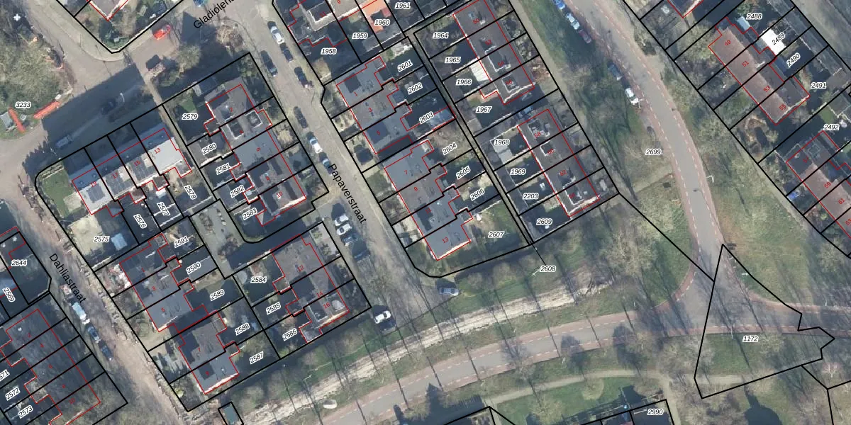 Gebruik de zoekbalk of klik op een perceel voor informatie over de adressen binnen dit perceel.