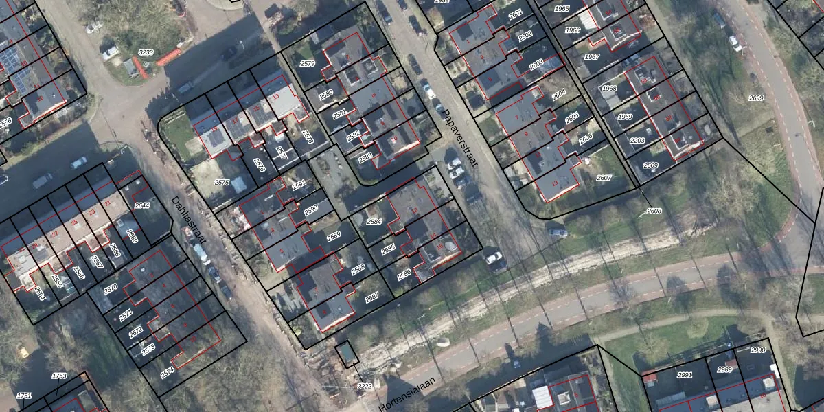 Gebruik de zoekbalk of klik op een perceel voor informatie over de adressen binnen dit perceel.