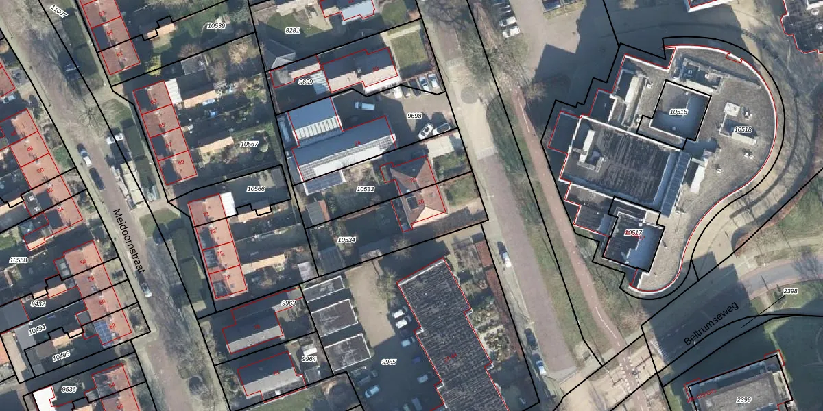 Gebruik de zoekbalk of klik op een perceel voor informatie over de adressen binnen dit perceel.