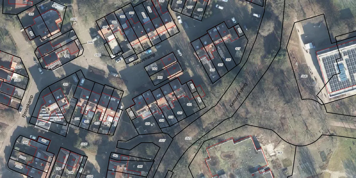 Het perceel waarop Reuvekamp 25 staat heeft een oppervlakte van 180 m². Dit is een middelgroot perceel. De perceeloppervlakte wordt geregistreerd door het Kadaster. Gedetailleerde informatie over de maten van dit perceel kunt u vinden in het rapport Kadastrale kaart met maatvoering van Reuvekamp 25.