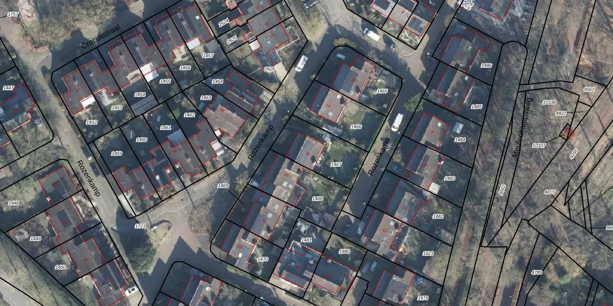 Het perceel waarop Rozenkamp 15 staat heeft een oppervlakte van 391 m². Dit is een groot perceel. De perceeloppervlakte wordt geregistreerd door het Kadaster. Gedetailleerde informatie over de maten van dit perceel kunt u vinden in het rapport Kadastrale kaart met maatvoering van Rozenkamp 15.
