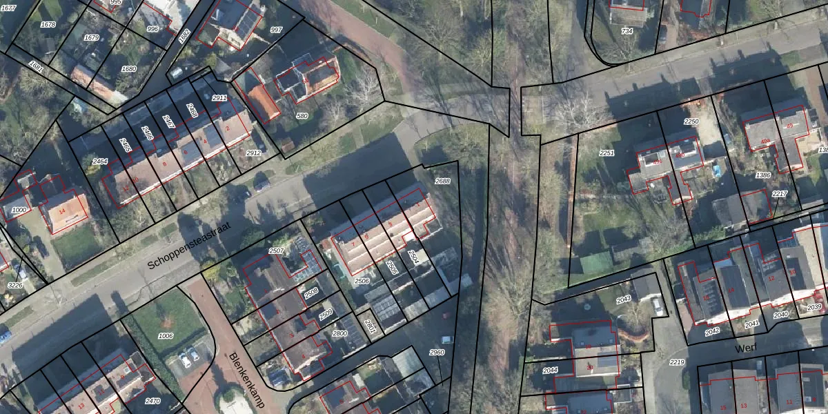 Schoppensteastraat 1 is gelegen op kadastraal perceel EBG02G2688. Deze kadastrale aanduiding is uniek en wordt gebruikt door het Kadaster om eigendomsrechten en andere zakelijke rechten vast te leggen. Het perceel maakt onderdeel uit van de kadastrale gemeente Eibergen.