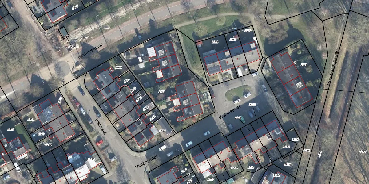 Het perceel waarop Violenstraat 3 staat heeft een oppervlakte van 1485 m². Dit is een zeer groot perceel. De perceeloppervlakte wordt geregistreerd door het Kadaster. Gedetailleerde informatie over de maten van dit perceel kunt u vinden in het rapport Kadastrale kaart met maatvoering van Violenstraat 3.