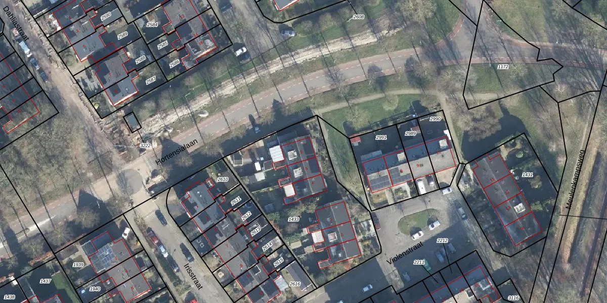 Het perceel waarop Violenstraat 6 staat heeft een oppervlakte van 1485 m². Dit is een zeer groot perceel. De perceeloppervlakte wordt geregistreerd door het Kadaster. Gedetailleerde informatie over de maten van dit perceel kunt u vinden in het rapport Kadastrale kaart met maatvoering van Violenstraat 6.