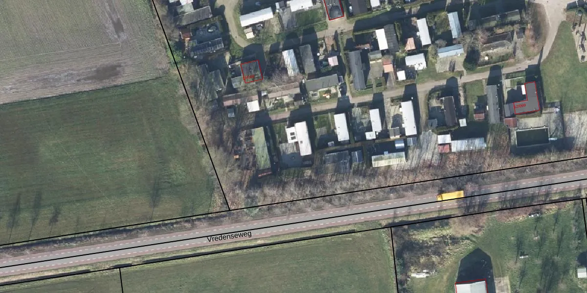 Het perceel waarop Vredenseweg 12-105 staat heeft een oppervlakte van 3,0 ha. Dit is een zeer groot perceel. De perceeloppervlakte wordt geregistreerd door het Kadaster. Gedetailleerde informatie over de maten van dit perceel kunt u vinden in het rapport Kadastrale kaart met maatvoering van Vredenseweg 12-105.