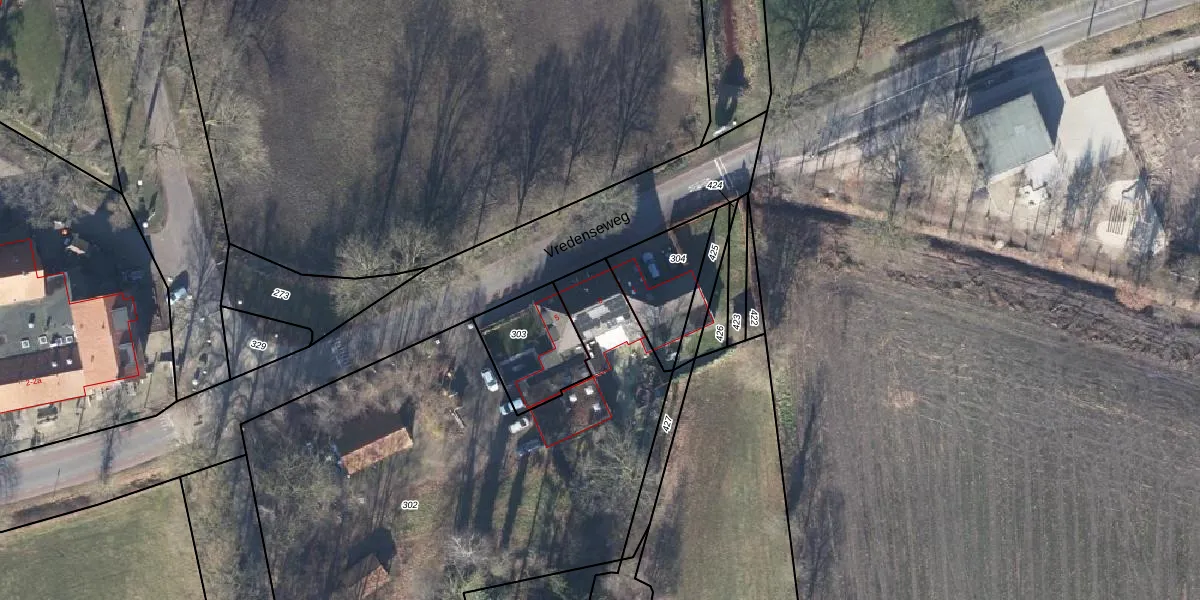 Het perceel waarop Vredenseweg 3 staat heeft een oppervlakte van 2855 m². Dit is een zeer groot perceel. De perceeloppervlakte wordt geregistreerd door het Kadaster. Gedetailleerde informatie over de maten van dit perceel kunt u vinden in het rapport Kadastrale kaart met maatvoering van Vredenseweg 3.