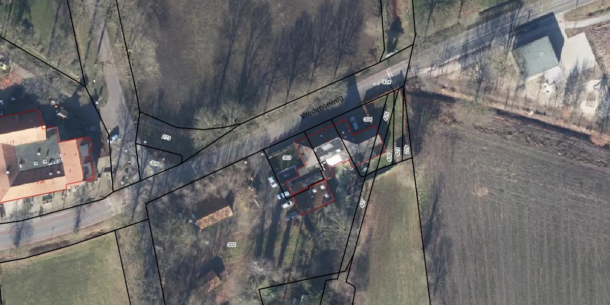 Vredenseweg 5 is gelegen op kadastraal perceel EBG02AC303. Deze kadastrale aanduiding is uniek en wordt gebruikt door het Kadaster om eigendomsrechten en andere zakelijke rechten vast te leggen. Het perceel maakt onderdeel uit van de kadastrale gemeente Eibergen.
