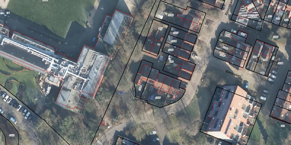 Het perceel waarop Wenneker 12 staat heeft een oppervlakte van 187 m². Dit is een middelgroot perceel. De perceeloppervlakte wordt geregistreerd door het Kadaster. Gedetailleerde informatie over de maten van dit perceel kunt u vinden in het rapport Kadastrale kaart met maatvoering van Wenneker 12.