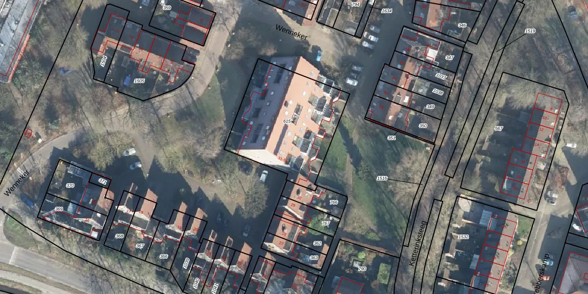 Het perceel waarop Wenneker 33 staat heeft een oppervlakte van 1109 m². Dit is een zeer groot perceel. De perceeloppervlakte wordt geregistreerd door het Kadaster. Gedetailleerde informatie over de maten van dit perceel kunt u vinden in het rapport Kadastrale kaart met maatvoering van Wenneker 33.