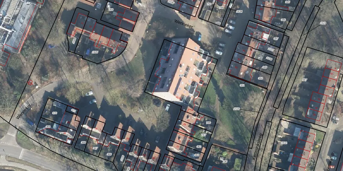 Het perceel waarop Wenneker 48 staat heeft een oppervlakte van 1109 m². Dit is een zeer groot perceel. De perceeloppervlakte wordt geregistreerd door het Kadaster. Gedetailleerde informatie over de maten van dit perceel kunt u vinden in het rapport Kadastrale kaart met maatvoering van Wenneker 48.